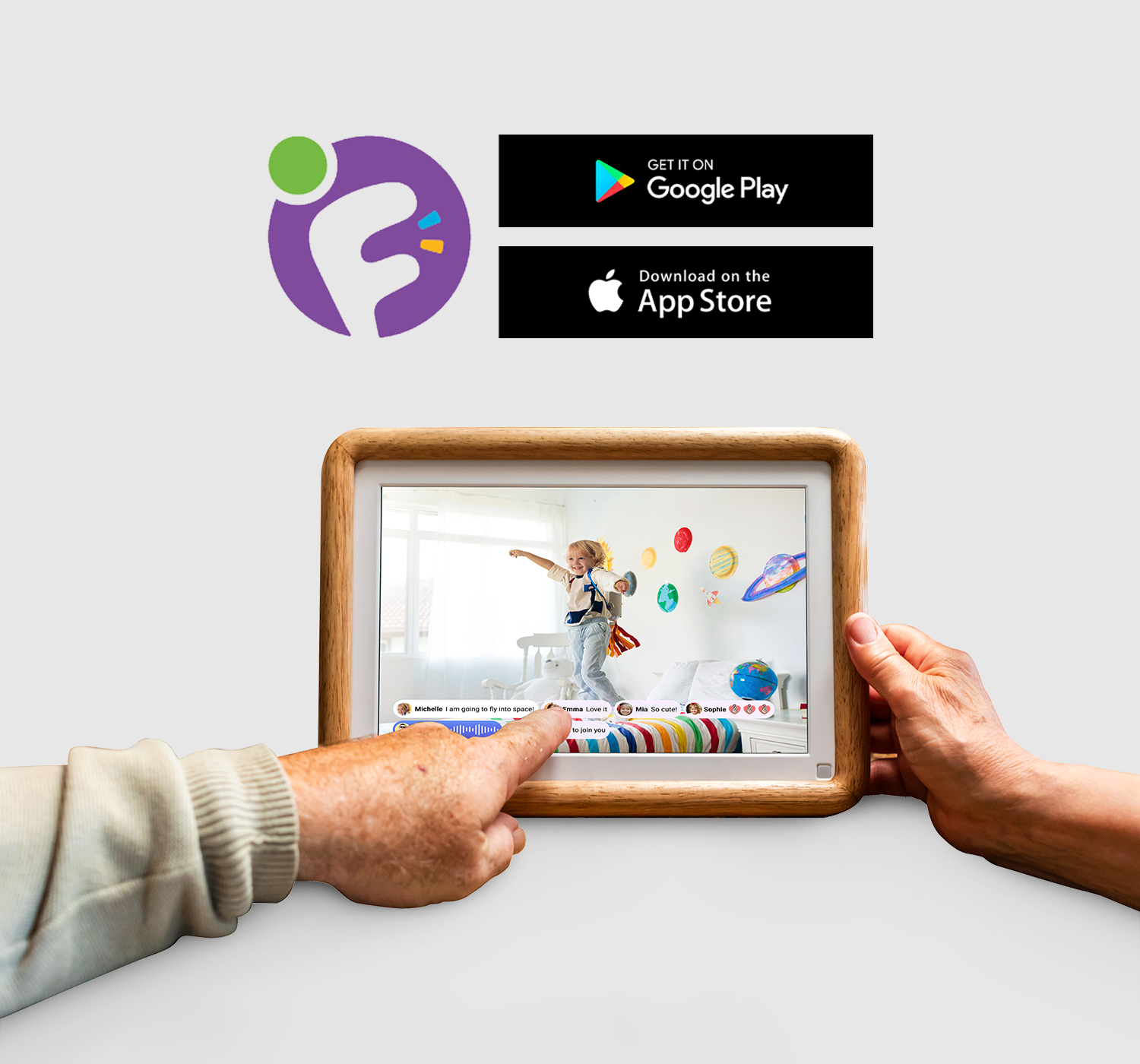 يعمل myFirst Circle كنظام يربط إطار myFirst Frame بهاتفك الذكي وبقية أجهزة myFirst Circle، مما يتيح لك مشاركة الصور ومقاطع الفيديو بسهولة مع عائلتك أينما كنت.